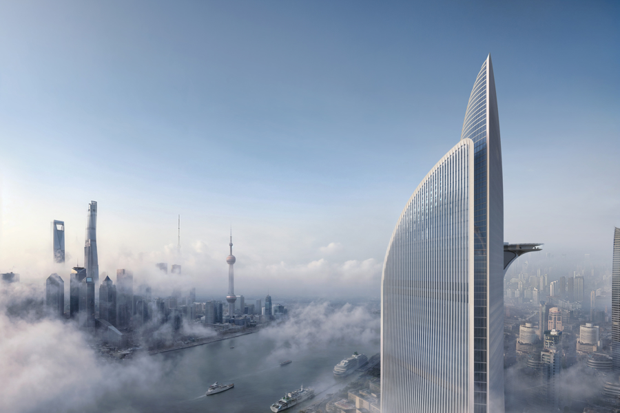 未来“浦西第一高楼”虹口北外滩91街坊项目塔冠效果图。
